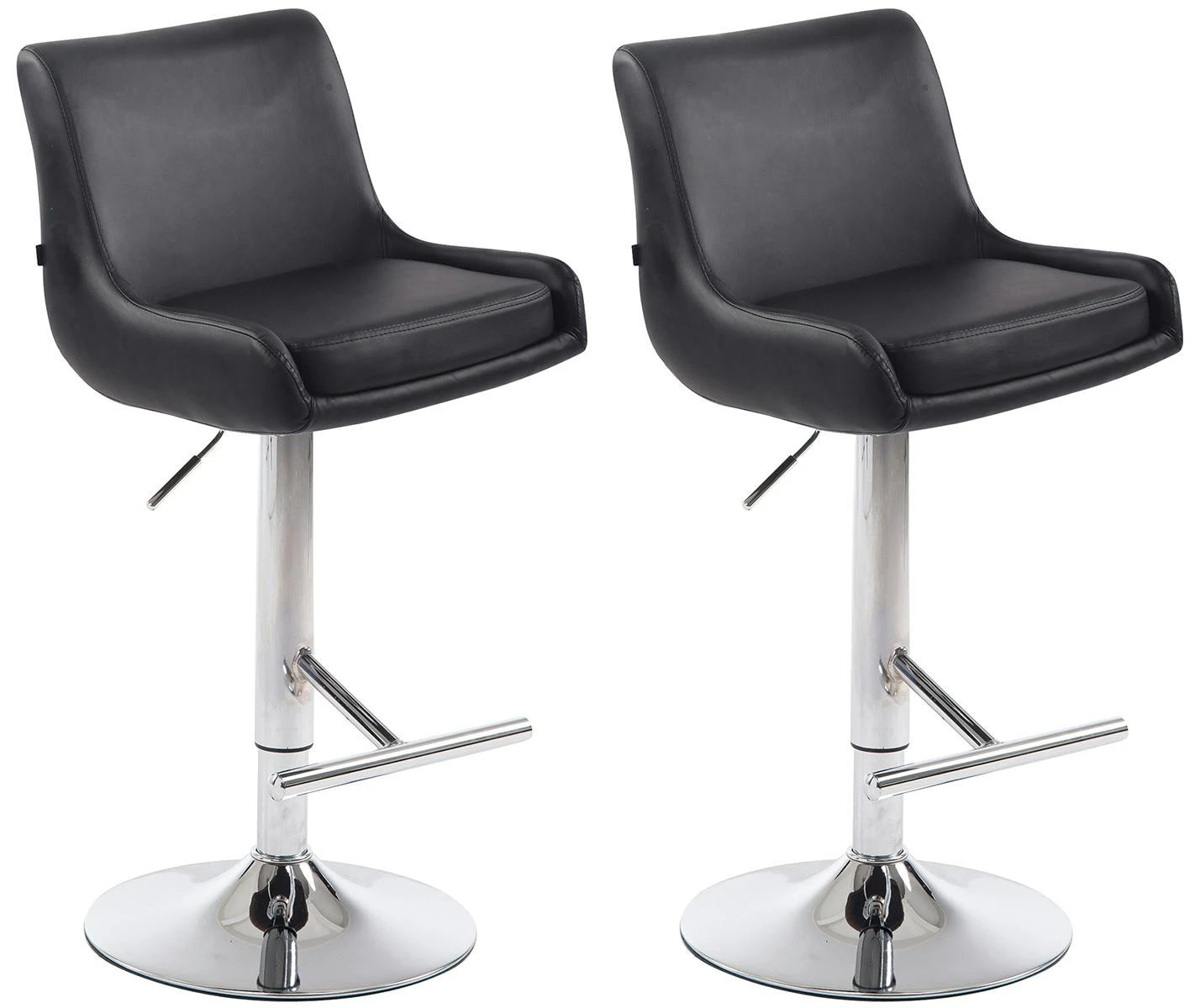 Der Barhocker Club ist mit einem Kunstlederbezug bezogen. Der Sitz ist dick gepolstert und bietet Ihrem Rücken dank der hohen Rückenlehne eine gute Stabilität. Mithilfe des Gaslifts lässt sich der Tresenhocker in der Wunschhöhe stufenlos einstellen, sodass er für jede Thekenhöhe bestens geeignet ist. Die Fußstütze, die einen sehr guten Sitzkomfort gewährleistet, ist synchron mit der Höhe des Sitzes verstellbar. Die Sitzfläche ist mit der Fußablage um 360° drehbar. Das Gestell besteht aus Metall in Chromoptik, unter dem Trompetenfuß befinden sich Bodenschoner, die ein Verkratzen des Bodens verhindern. Der Barstuhl ist leicht zu reinigen und ist in vielen verschiedenen Farben erhältlich.