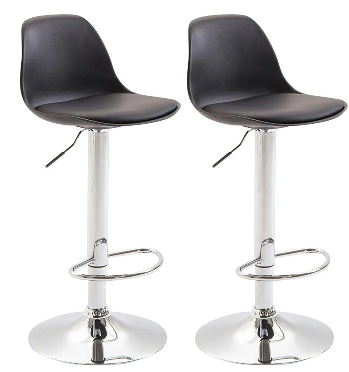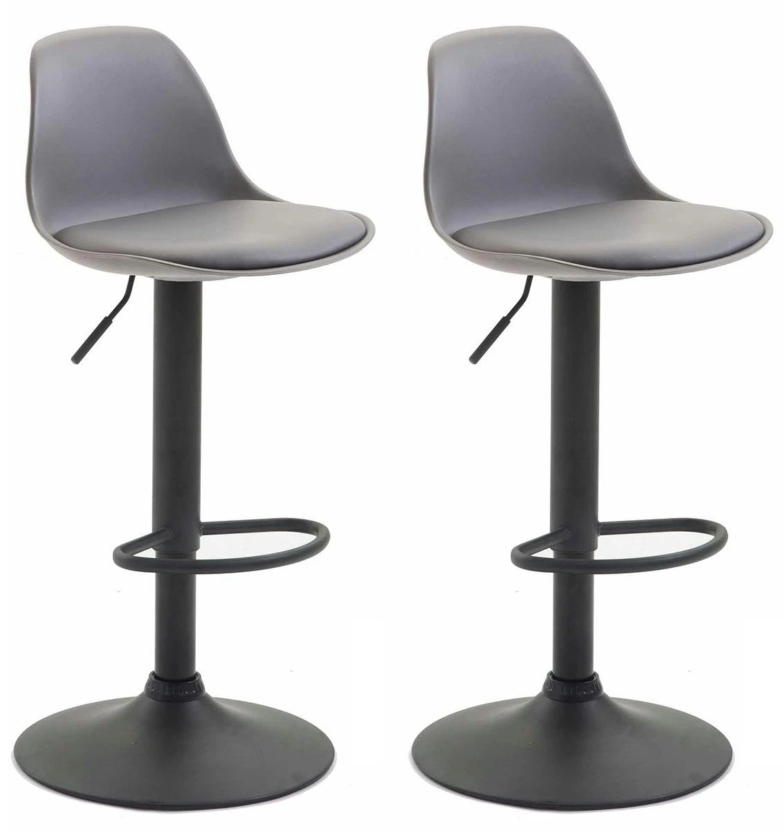 Dieses moderne Barhocker-Set besteht aus einem Materialmix aus Kunststoff, Kunstleder und einem robusten Metallgestell. Die Sitzschale wurde aus stabilem Kunststoff hergestellt. Dank der angenehmen Polsterung im Sitzbereich aus formstabilem Kaltschaum und einem pflegeleichten Kunstlederbezug sind die Tresenhocker besonders bequem und leicht zu reinigen. Darüber hinaus sind die Thekenhocker höhenverstellbar und passen sich jeder Körpergröße an. Der Trompetenfuß aus wahlweise Metall in Chrom-Optik oder Metall Matt-schwarz ist mit einer Fußstütze versehen. Die Gestelle verfügen über Bodenschoner, diese verhindern Kratzer und Beschädigungen an Ihren Böden. Sie können die Sitzschale in bis zu 8 Farben wählen.