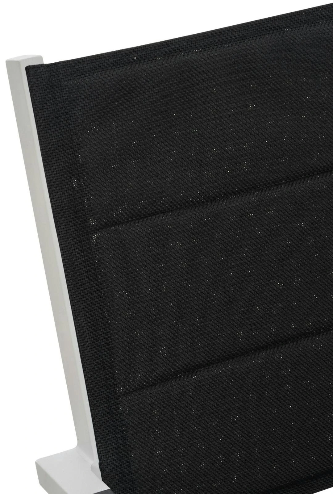 Diese modernen Gartenstühle sind im edlen Design gehalten und eine erfrischende Abwechslung in jedem Garten, Esszimmer oder auf der Terrasse. Die bequemen gepolsterten Lehnstühle überzeugen mit ansprechender Optik und Funktionalität. Die Sitzfläche ist aus atmungsaktivem und wasserfestem Textilene gefertigt und der Rahmen aus Weiß pulverbeschichtetem Aluminium. Unter den Füßen haben die Stühle Endkappen aus Kunststoff, die ein Verkratzen des Bodens verhindern. Dank seiner wetterfesten und pflegeleichten Materialien sind die Stühle schnell und einfach zu reinigen.