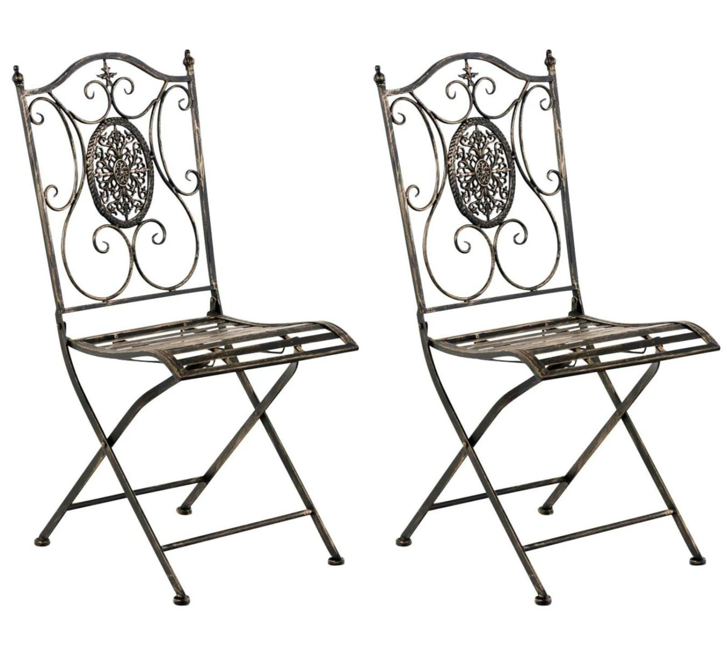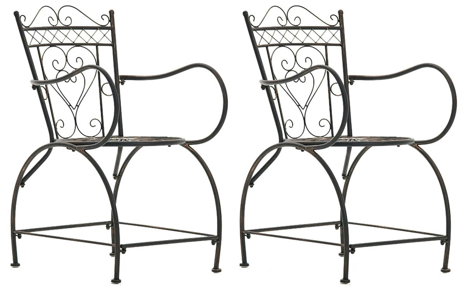 Das Set lädt dazu ein, idyllische Momente im Freien zu genießen. Im stilvollen, detailverliebten Design findet es seinen Platz im Garten und auf dem Balkon. Das filigrane Gestell aus Eisen beeindruckt mit liebevollen, handgefertigten Verzierungen. Eine in Handarbeit nachempfundene antike Patina veredelt die Oberflächen der Gartenstühle. In den Farben Antik-Braun, Antik-Weiß, Antik-Creme, Antik-Grün, Bronze und Weiß lässt sich das 2er Set Stühle Sheela wunderbar mit vielen Einrichtungsstilen kombinieren.