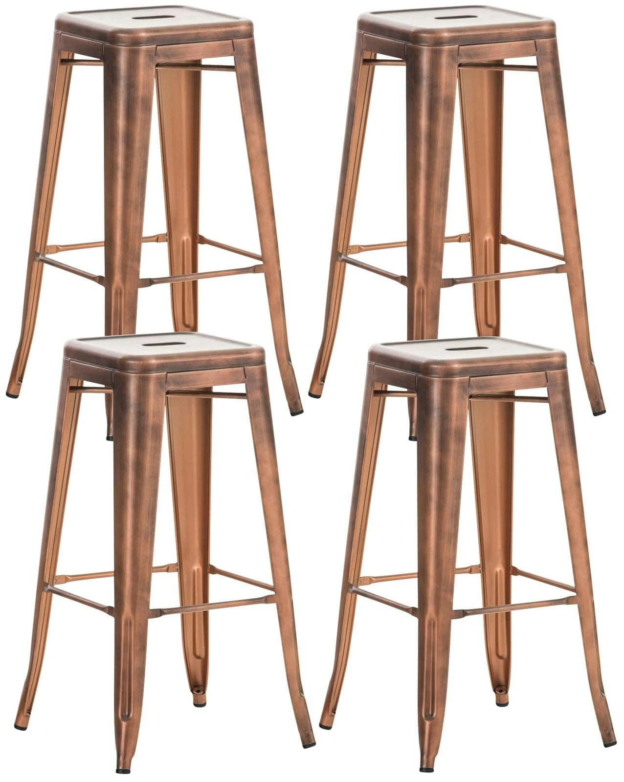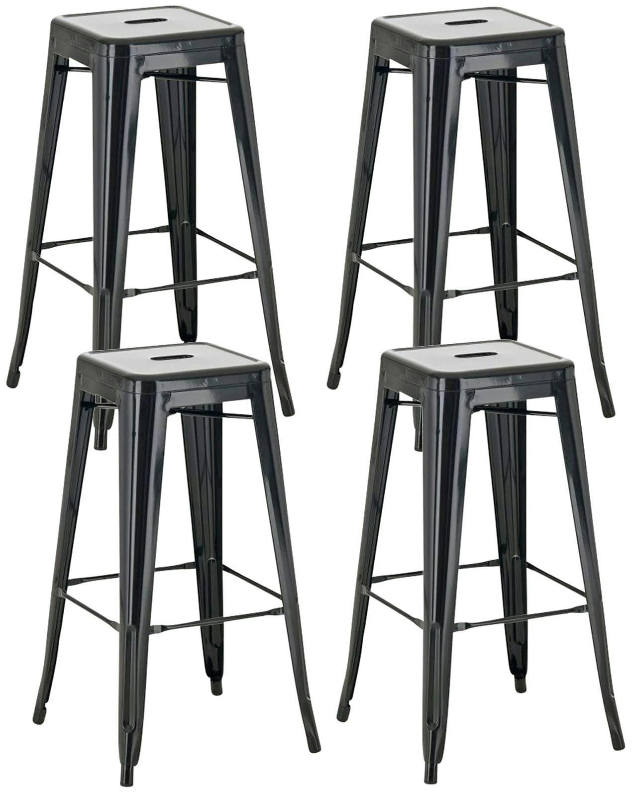 Dieser Barhocker aus pulverbeschichtetem Metall zeigt immer wahrhaftige Standfestigkeit. Sowohl zwischen den Standbeinen als auch unter der Sitzfläche befinden sich Querstreben, welche für eine hohe Stabilität sorgen – Erstere dienen zugleich als bequeme Fußstütze. Praktisch: Die lackierte Oberfläche ist extrem pflegeleicht und kann mühelos mit einem feuchten Tuch gereinigt werden. Bei Platzmangel kann der Barhocker sogar im Handumdrehen gestapelt werden.