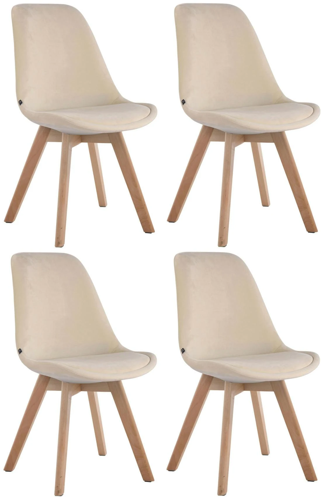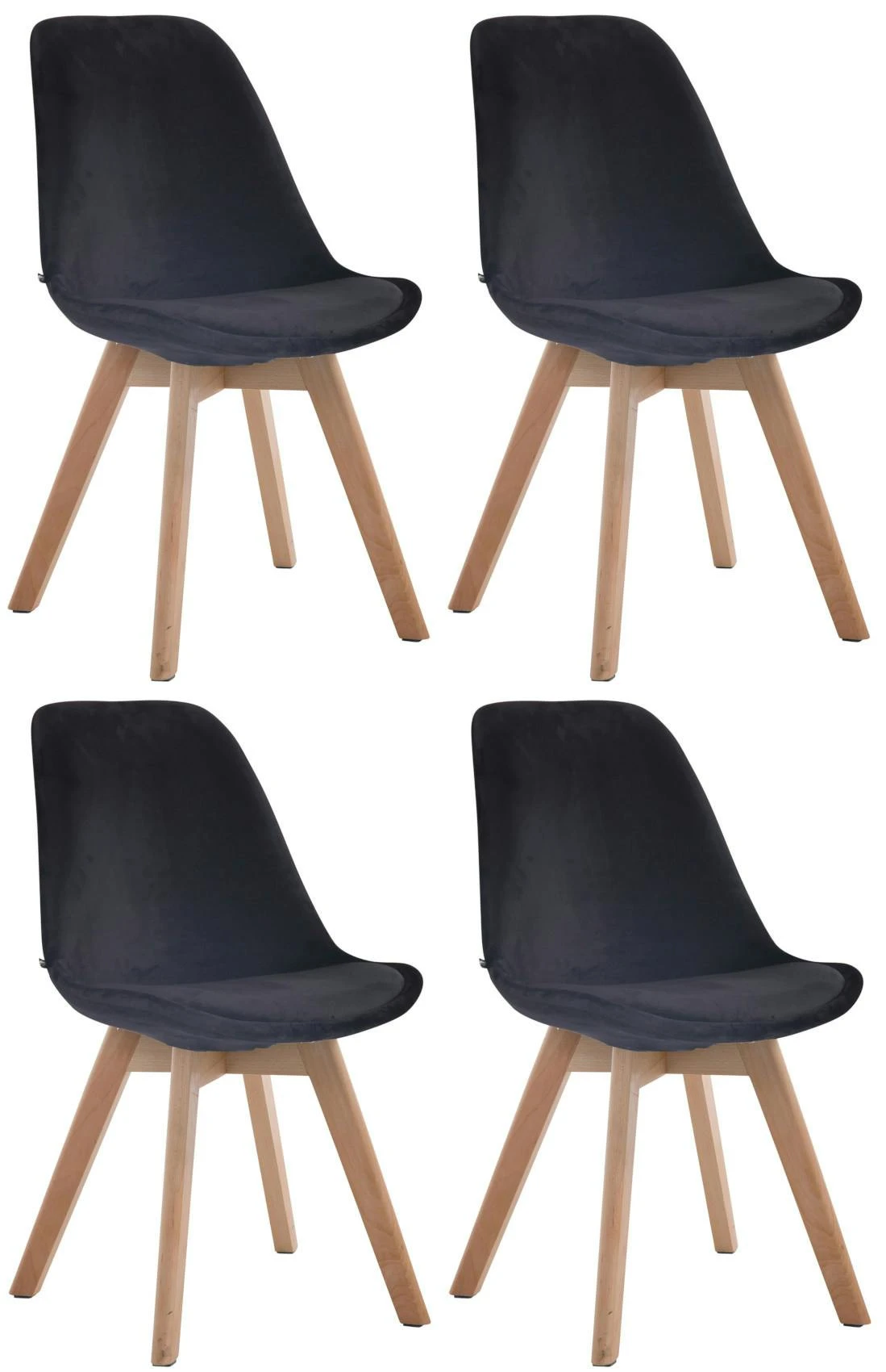 Diese Esszimmerstühle verleihen jedem Raum einen exklusiven Look. Die komfortablen Lehnstühle bestechen nicht nur durch hervorragende Sitzeigenschaften, sondern auch durch den spannenden Materialmix aus Samt und Holz. Die Sitzschalen sind aus stabilem Kunststoff hergestellt. Die angenehme und komfortable Polsterung mit Samtbezug ermöglicht ein bequemes Sitzen auch über einen längeren Zeitraum. Auf dem 4-Fuß Untergestell, aus wahlweise Buchen- oder Eichenholz, stehen diese Besucherstühle einfach bei jedem Anlass gut da. Das Modell ist genau das Richtige, wenn Sie sich gerne modern einrichten.