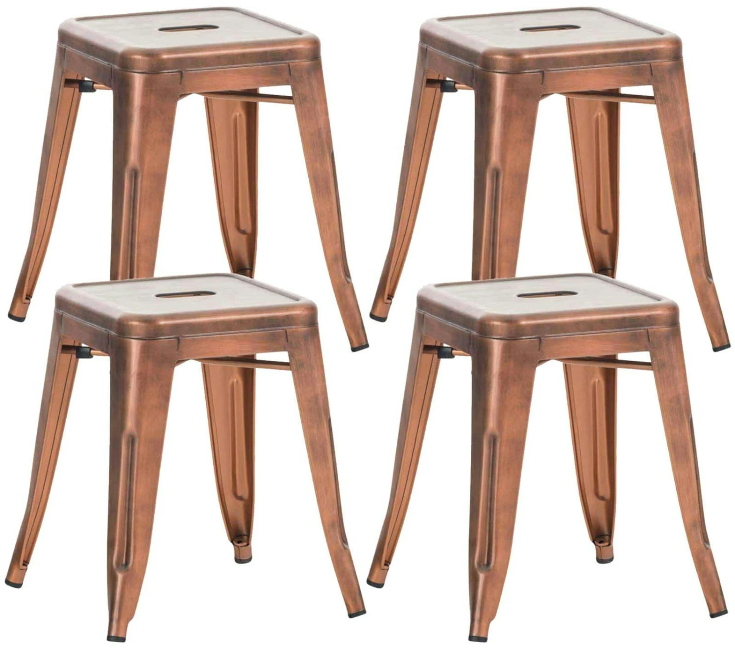 Diese Sitzhocker aus pulverbeschichtetem Metall zeigen immer wahrhaftige Standfestigkeit. Unter der Sitzfläche befinden sich Querstreben, die für eine hohe Stabilität sorgen.