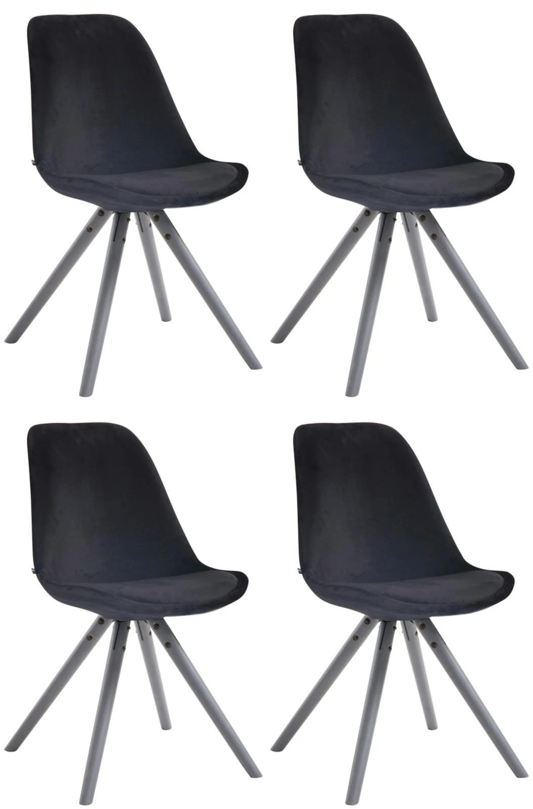 4er Set Stühle Toulouse Samt Rund Grau Schwarz