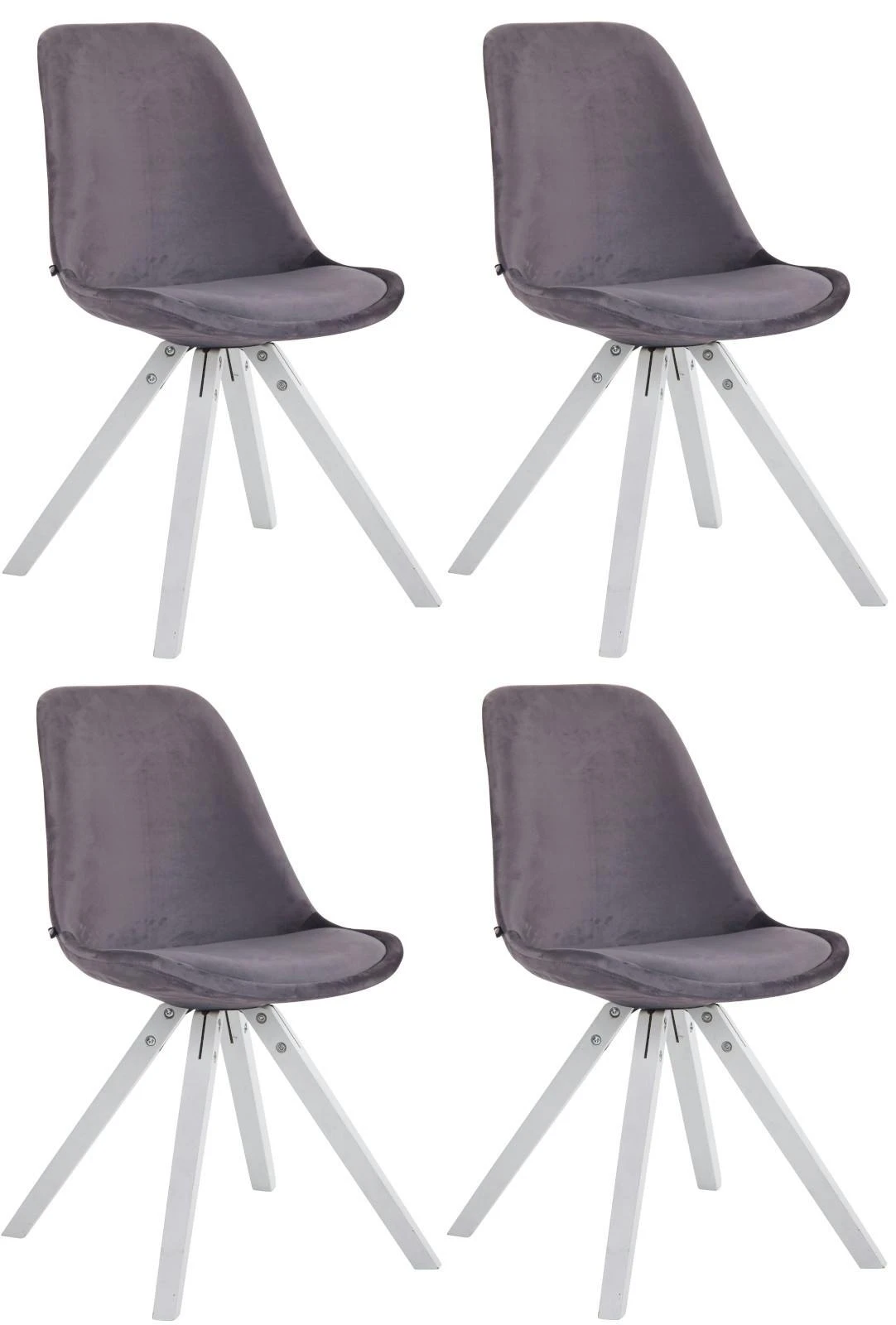 4er Set Stühle Toulouse Samt Square Weiß Dunkelgrau