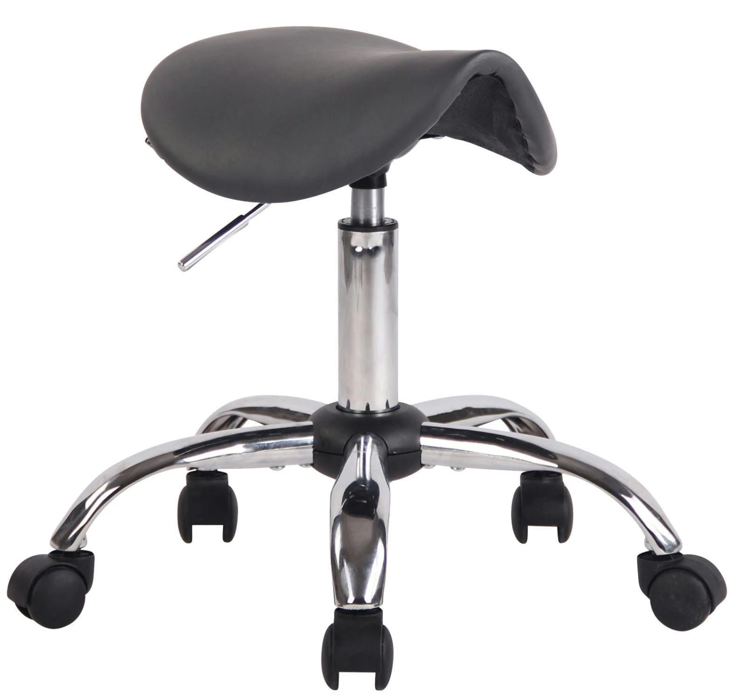 Der Hocker ist drehbar und fährt auf 5 Rollen. Die Besonderheit ist das dieser Hocker mit ca. 8 cm sehr dick gepolstert ist. Auf diesem Arbeitshocker kann sehr lange gesessen und gearbeitet werden.