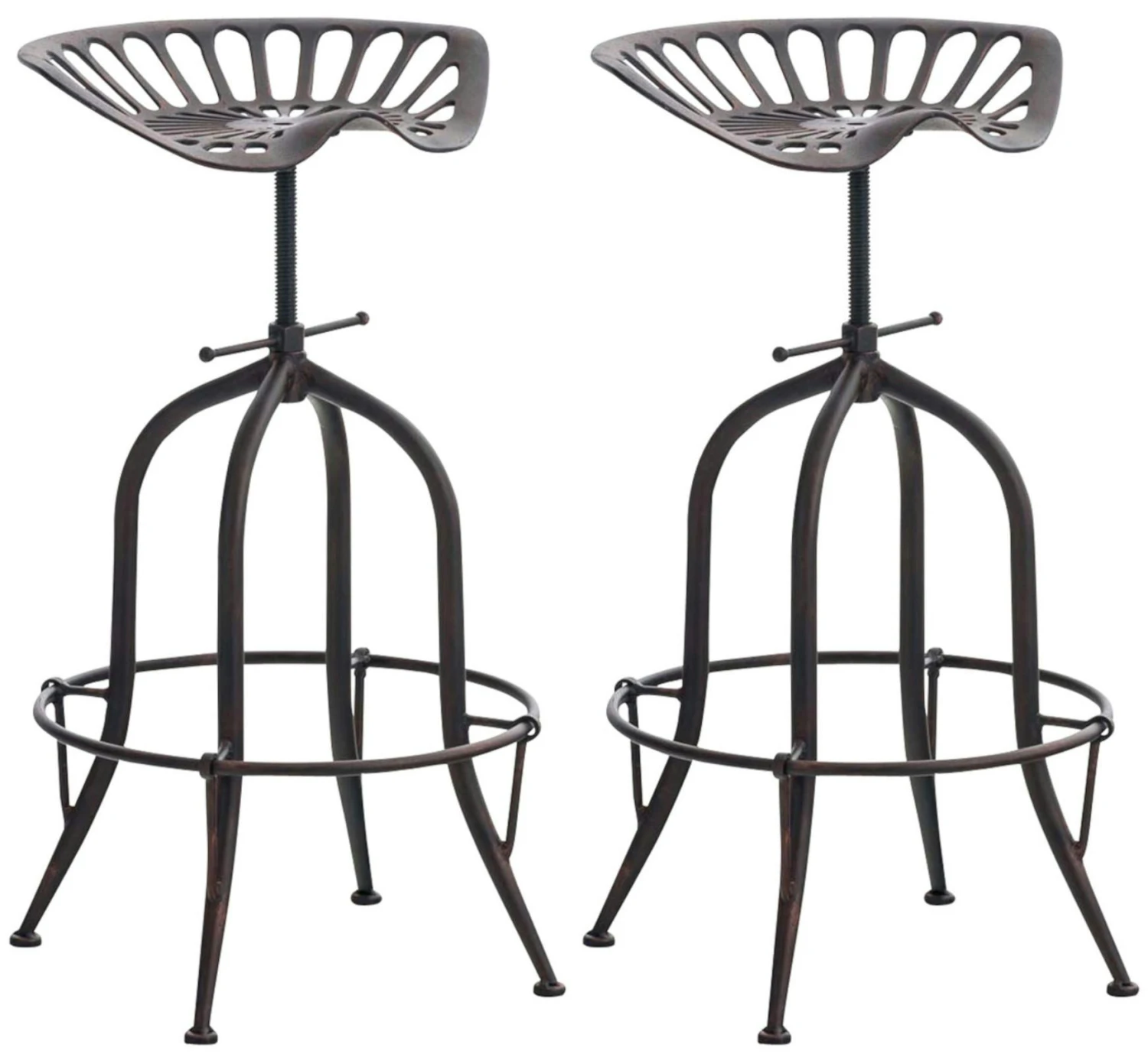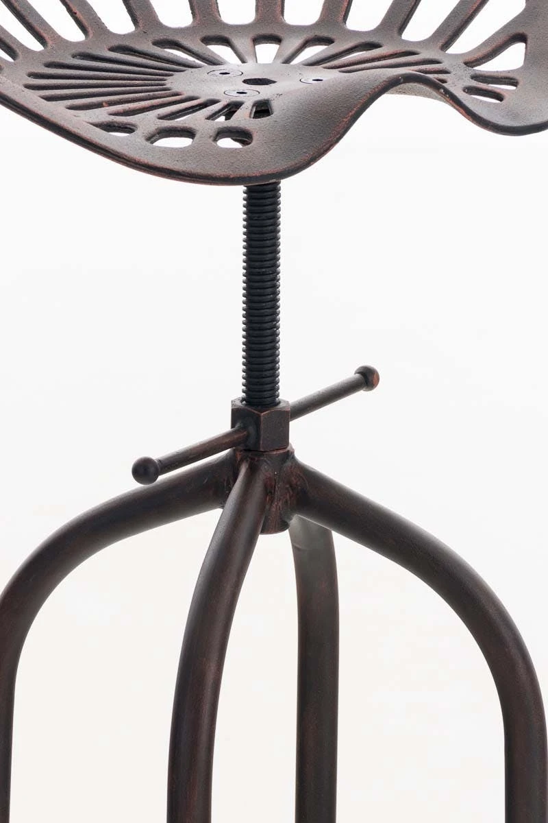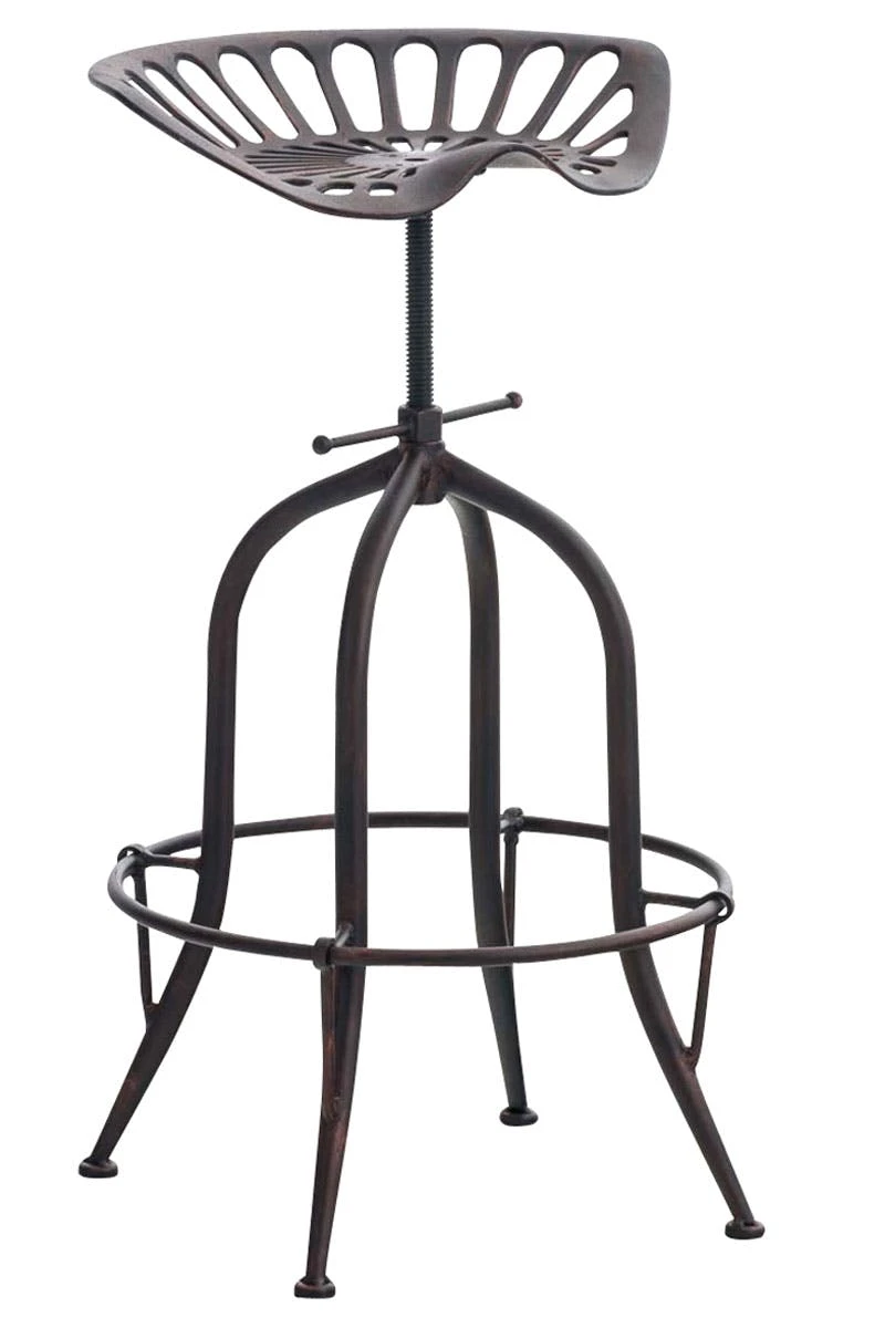Dieser Barhocker besticht mit seinem ausgeprägten und robusten Design. Sein Look mit dem interessanten Sitz und seinen geschwungenen Beinen ist ein echter Hingucker. Der gusseiserne Sitz bietet auch ohne jede Polsterung besten Sitzkomfort, denn die Sitzfläche ist durch eine leichte Wölbung körpergerecht geformt. Die höhenverstellbare Sitzfläche, welche sich durch die Feststellkurbel unter dem Sitz einstellen lässt und somit ein lästiges Wackeln verhindert, bietet eine gemütliche Sitzgelegenheit bei jeder Körpergröße. Der Sitzkomfort wird hervorragend durch die Fußstütze unterstützt und Stabilität bekommt der Tresenhocker durch sein Vierfußgestell aus pulverbeschichtetem Metall.