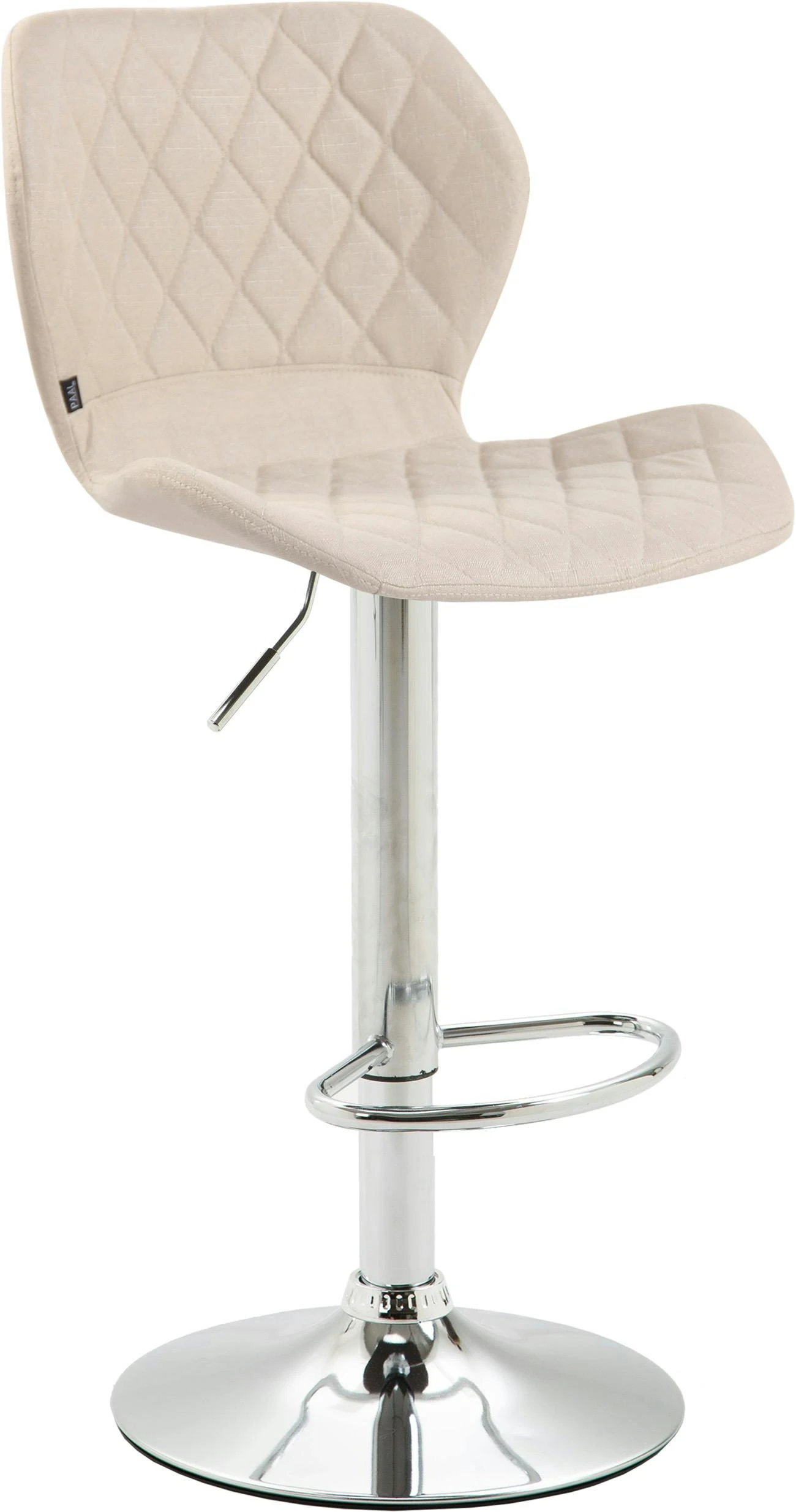 Dieser Barhocker verleiht jedem Raum einen exklusiven Look und besticht nicht nur durch seine hervorragenden Sitzeigenschaften, sondern auch durch sein modernes Design. Der stylisch gesteppte Sitz mit Stoffbezug sowie die Fußstütze ermöglichen ein bequemes Sitzen über einen längeren Zeitraum hinaus. Der Thekenhocker ist mittels Gaslift höhenverstellbar sowie um 360° drehbar. Der Trompetenfuß aus Metall ist mit einem Bodenschoner ausgestattet, der Kratzer und Beschädigungen auf dem Boden verhindert.