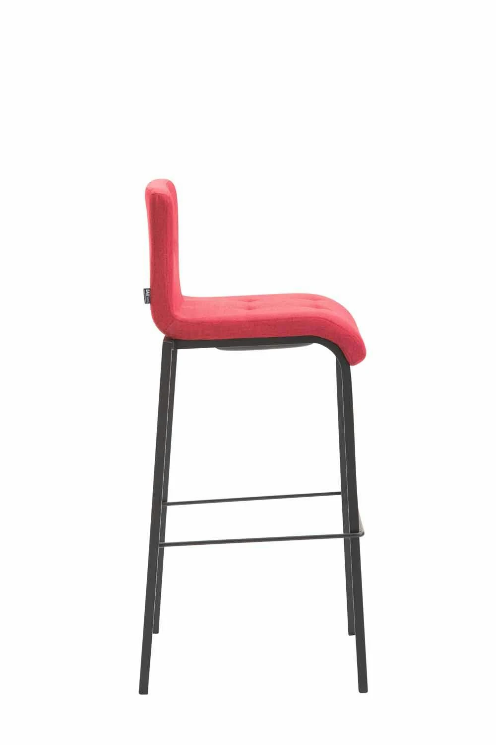 Dabei besteht der Barhocker aus hochwertigen Materialien: Die Sitzfläche ist mit einem pflegeleichten Stoffbezug bezogen, bequem gepolstert und besonders widerstandsfähig. Die Lehne erlaubt es, sich zurücklehnen zu können und erhöht somit den Sitzkomfort des Barhockers. Das stabile eckige 4-Fußgestell aus Metall sorgt dabei für einen sicheren und festen Stand und macht den Barhocker stapelbar.