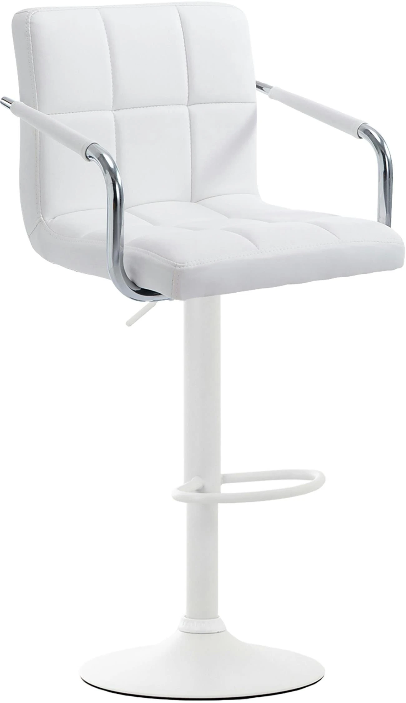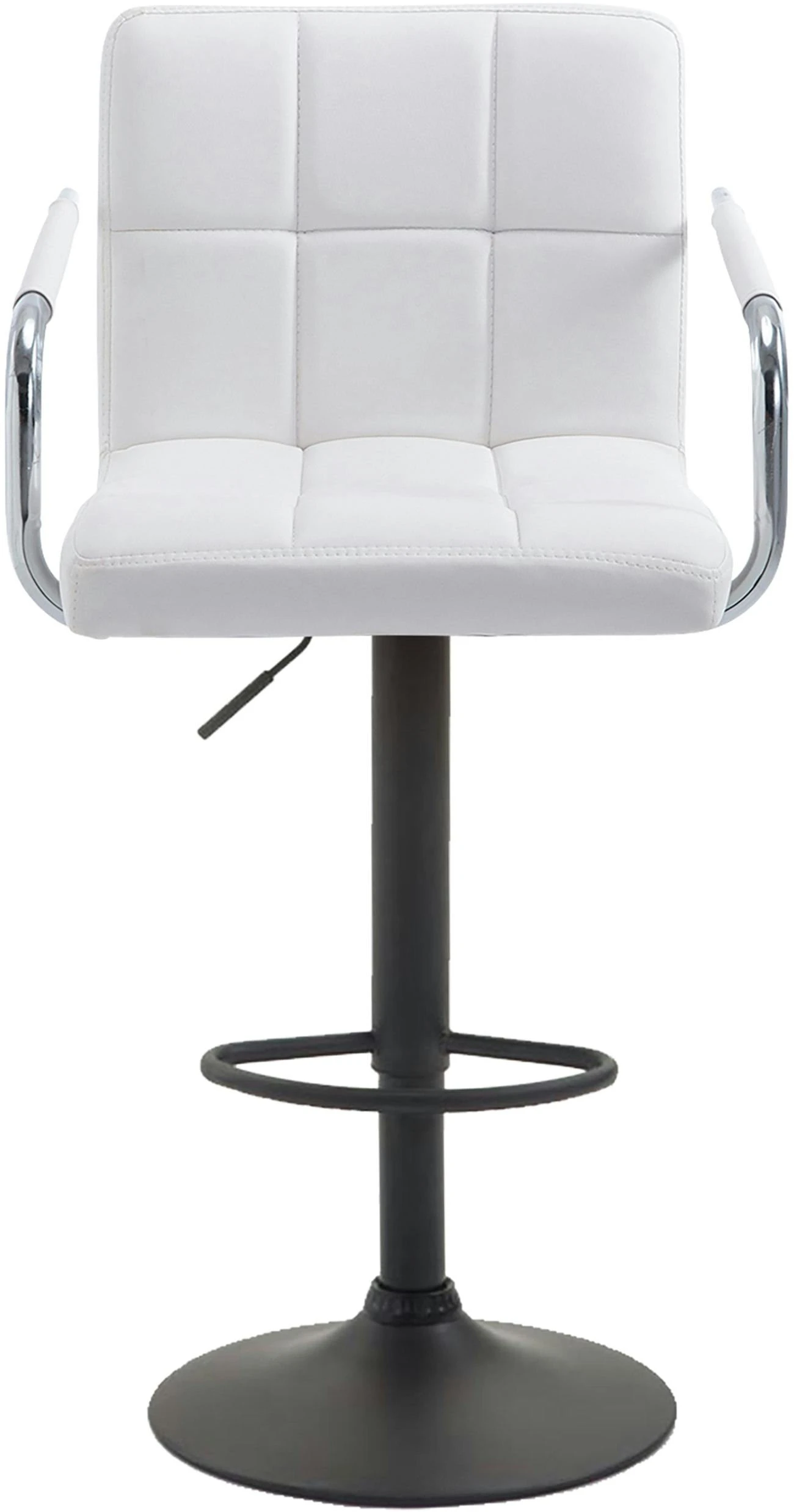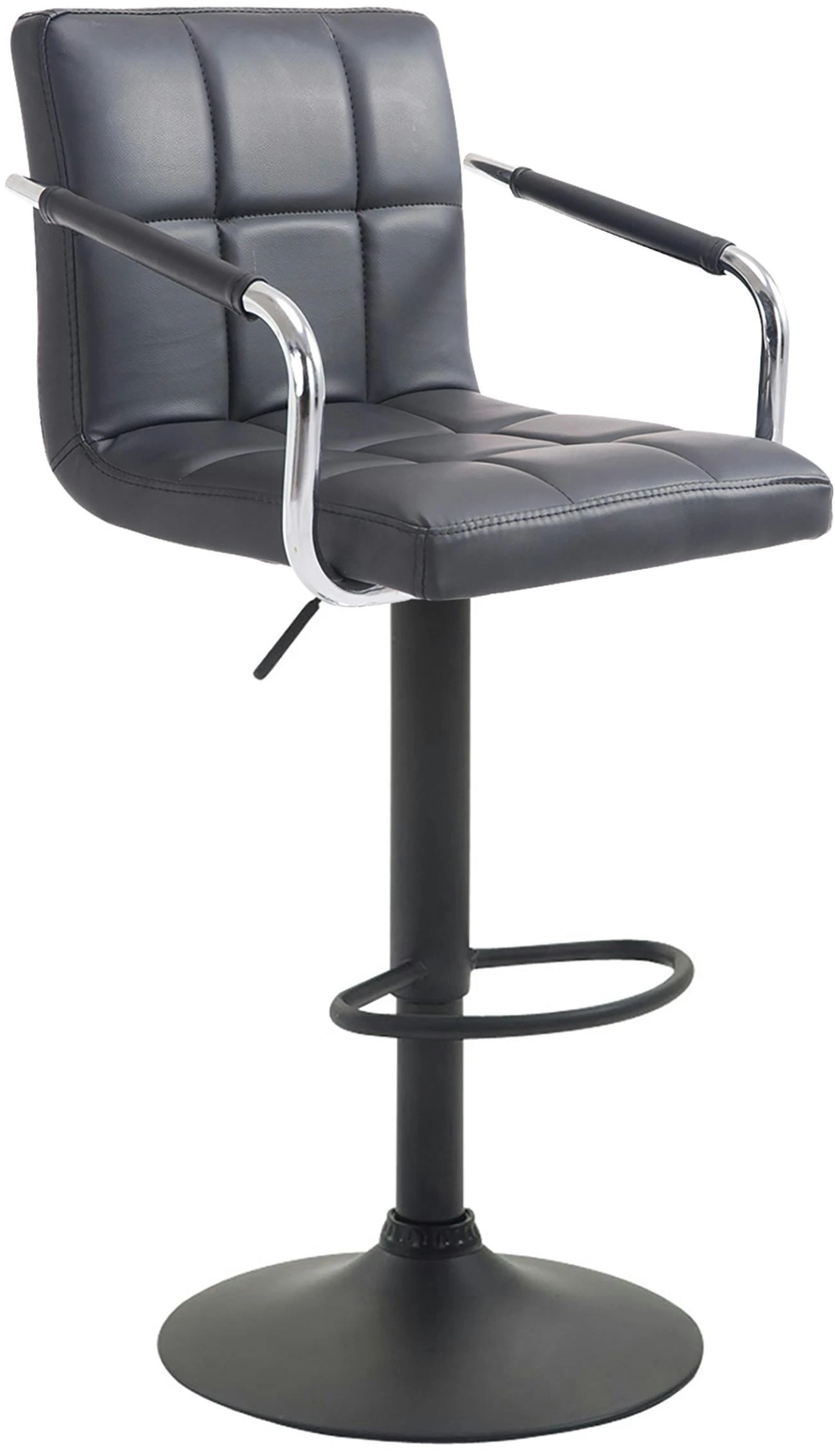 Dieser Barhocker ist ein echter Blickfang – modern, dennoch zeitlos. Er besticht durch Rückenlehne, Armlehnen und Fußstütze, sodass Sie einen ganzen Abend bequem sitzen können. Die Sitzfläche ist um 360° drehbar und die ergonomische Form passt sich perfekt dem Rücken an. Die Oberfläche aus Kunstleder ist sehr leicht zu reinigen, falls mal etwas daneben geht. Durch die stufenlose Höhenverstellbarkeit des Gasliftes ist dieser Barhocker universell einsetzbar und für alle Thekenhöhen geeignet.