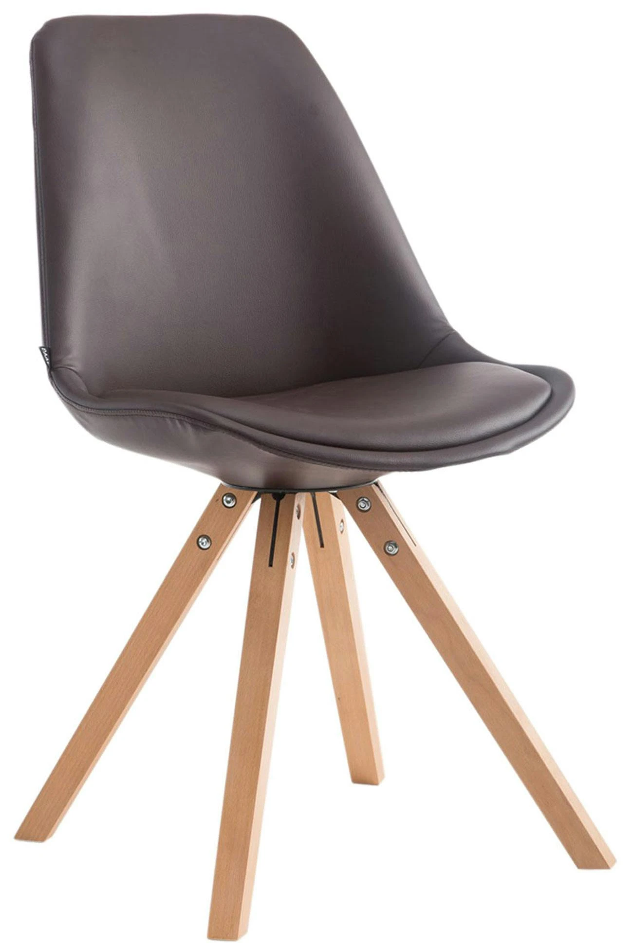 Dieser Stuhl verleiht jedem Raum einen exklusiven Look. Der komfortable Polsterstuhl besticht nicht nur durch hervorragende Sitzeigenschaften, sondern auch durch den spannenden Materialmix von Kunstleder und Holz. Die mit Kunstleder überzogene Sitzschale ist komplett gepolstert im Sitz- und Rückenbereich, sodass ein bequemes Sitzen auch über einen längeren Zeitraum kein Problem ist. Bei dem Gestell haben Sie die Qual der Wahl, als Beinform stehen rund oder eckig (square) zur Auswahl und als Gestellfarbe können Sie zwischen natura, cappuccino, weiß und grau wählen. Auf dem stabilen Vierfußgestell aus Buchenholz oder Eichenholz steht dieser Besucherstuhl bei jedem Anlass gut da.