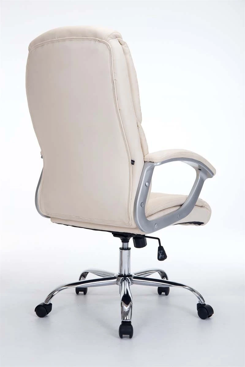 Dieser Bürostuhl ist ideal für große und schwere Personen geeignet, da die Gasdruckfeder auf einen dauerhaften Gebrauch bis zu 210 kg ausgerichtet ist. Der Chefsessel Rodeo ist ein exklusiver Bürostuhl mit einer sehr hochwertigen Polsterung und Kunstlederbezug. Kunstlederbezüge haben den Vorteil, dass sie elastisch sind und sich bei Entlastung wieder glatt ziehen. Dies sieht nicht nur schöner aus, sondern erhöht zusätzlich die Lebensdauer des Sitzbezuges. Das Gestell ist aus Metall in Chromoptik und dadurch sehr stabil. Dank der verstellbaren Sitzhöhe und den angenehm gepolsterten Armlehnen ist ergonomisches Sitzen garantiert. Die Sitzhöhe ist mit dem Hebel unter dem Sitz stufenlos verstellbar. Die stilvollen Zierknöpfe an der Rückenlehne und auf der Sitzfläche tragen zum edlen Design bei. Der eingebaute Wippmechanismus sorgt für mehr Bewegungsfreiheit. Der Bürostuhl steht standsicher auf fünf Leichtlaufrollen.