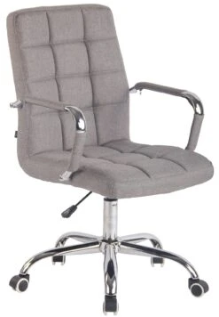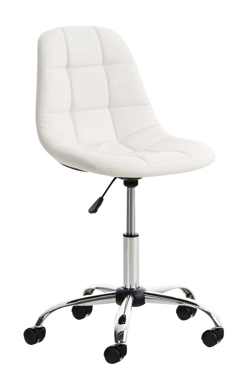 Der Bürostuhl Emil besticht durch seine komfortable Polsterung und einen schlanken, rundlichen Look. Rechteckige Ziernähte und klare Farbvarianten machen den Bürostuhl zum optischen Highlight an jedem Arbeitsplatz. Der filigrane Sitz ist mit einem Kunstlederbezug überzogen und dank einer stufenlos verstellbaren Sitzhöhe ist das ergonomische Sitzen garantiert. Dabei steht er standsicher auf fünf Leichtlaufrollen und einem Gestell aus Metall in Chromoptik. Egal ob Hart- oder Teppichböden – man kann immer leicht und locker über den Boden rollen.