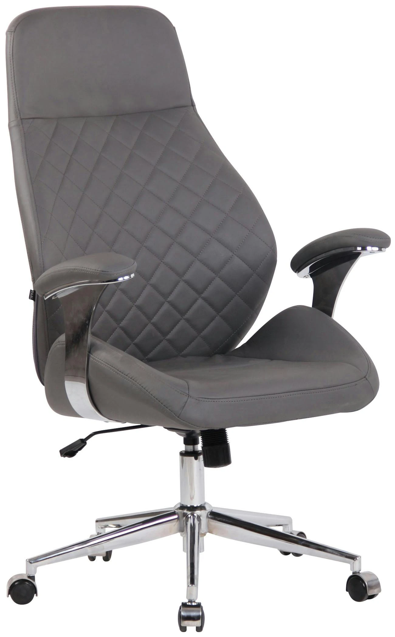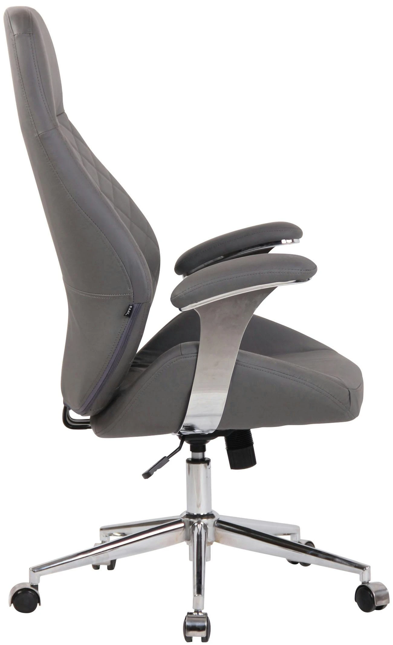Dieser Bürostuhl Layton überzeugt nicht nur mit seinem modernen Look, auch in Sachen Komfort kann ihm keiner etwas vormachen. Der Drehstuhl ist mit einem pflegeleichten Kunstlederbezug oder Echtlederbezug versehen. Bei der Echtledervariante ist die Sitzfläche und Rückenlehne mit hochwertigem Rindsleder bezogen. Die Rück- und Unterseite ist mit pflegeleichtem Kunstleder bezogen. Dank der angenehmen Polsterung und der Rückenlehne ist optimaler Sitzkomfort auch über einen längeren Zeitraum gewährleistet. Des Weiteren ist die Sitzhöhe stufenlos verstellbar und garantiert ein ergonomisches Sitzen und der Wippmechanismus sorgt für mehr Bewegungsfreiheit. Bei der Kunstledervaiante ist das Untergestell aus Kunststoff und die fünf gummierten Leichtlaufrollen garantieren einen sicheren Stand und sorgen für ein leichtes und lockeres Rollen über Hart- oder Teppichböden. Bei der Echtledervariante handelt sich um ein Metallgestell mit fünf Leichtlaufrollen.