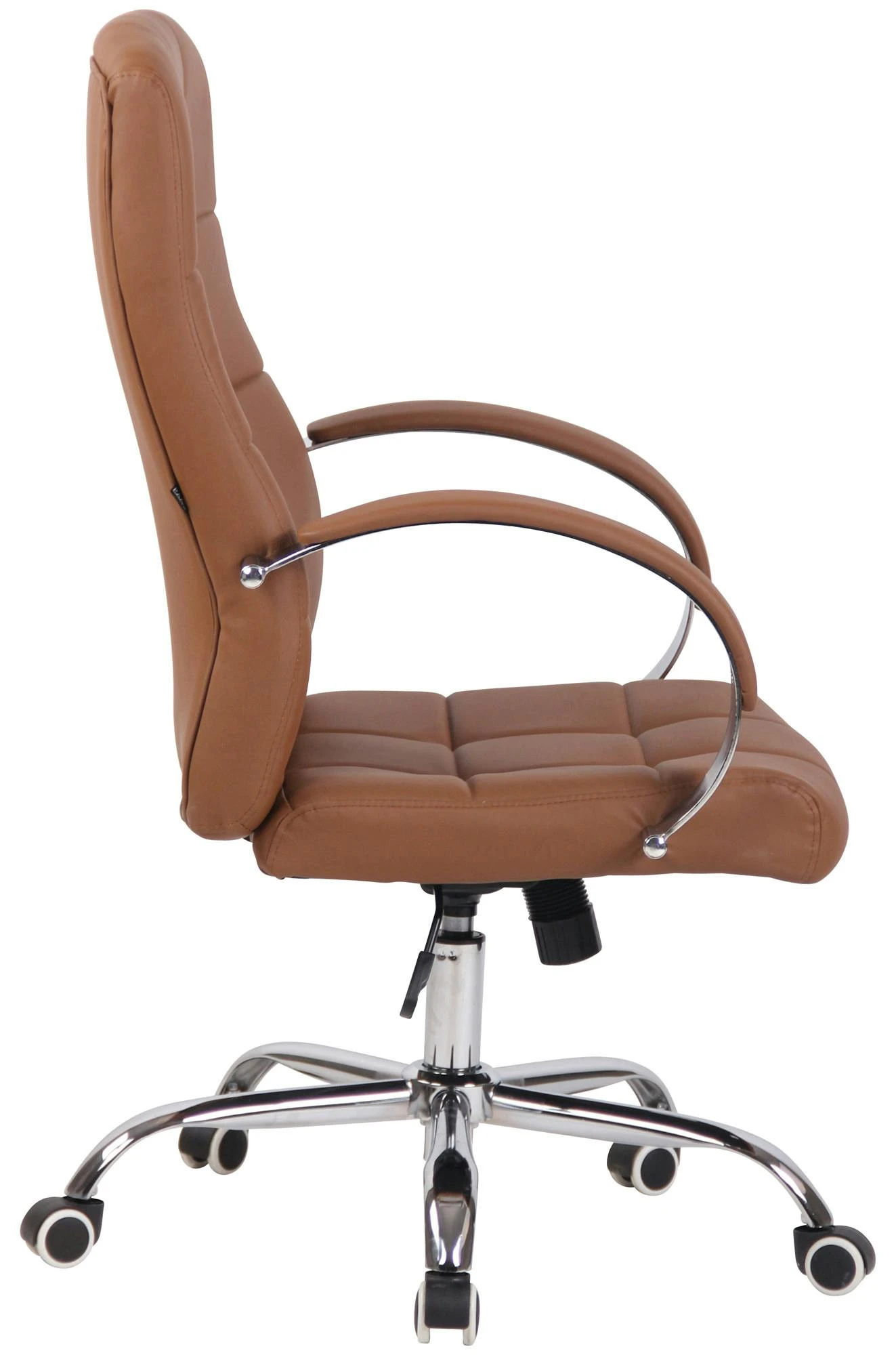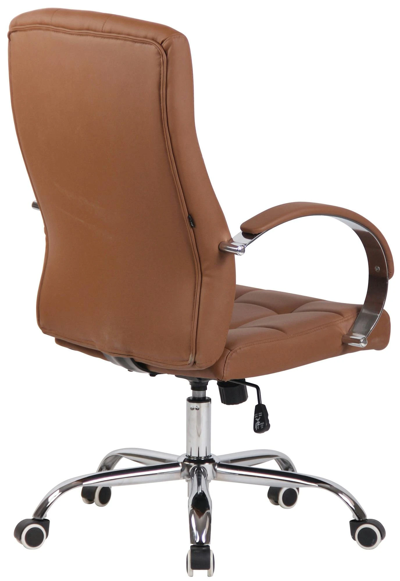 Der Chefsessel Mikos ist ein extrem hochwertiger Bürostuhl mit einer sehr hochwertigen Polsterung und Kunstlederbezug. Kunstlederbezüge haben den Vorteil, dass sie elastisch sind und sich bei Entlastung wieder glatt ziehen. Dies sieht nicht nur schöner aus, sondern erhöht zusätzlich die Lebensdauer des Sitzbezuges. Kunstlederbezüge sind außerdem atmungsfähig, was grade bei hohen Temperaturen ein Vorteil ist. Das Gestell ist aus Metall und sehr stabil. Der Stuhl steht standsicher auf fünf Leichtlaufrollen. Die Sitzhöhe ist stufenlos verstellbar. Der Stuhl verfügt über einen eingebauten Wippmechanismus für mehr Bewegungsfreiheit. Der Bürostuhl verfügt über sehr robuste Laufrollen.