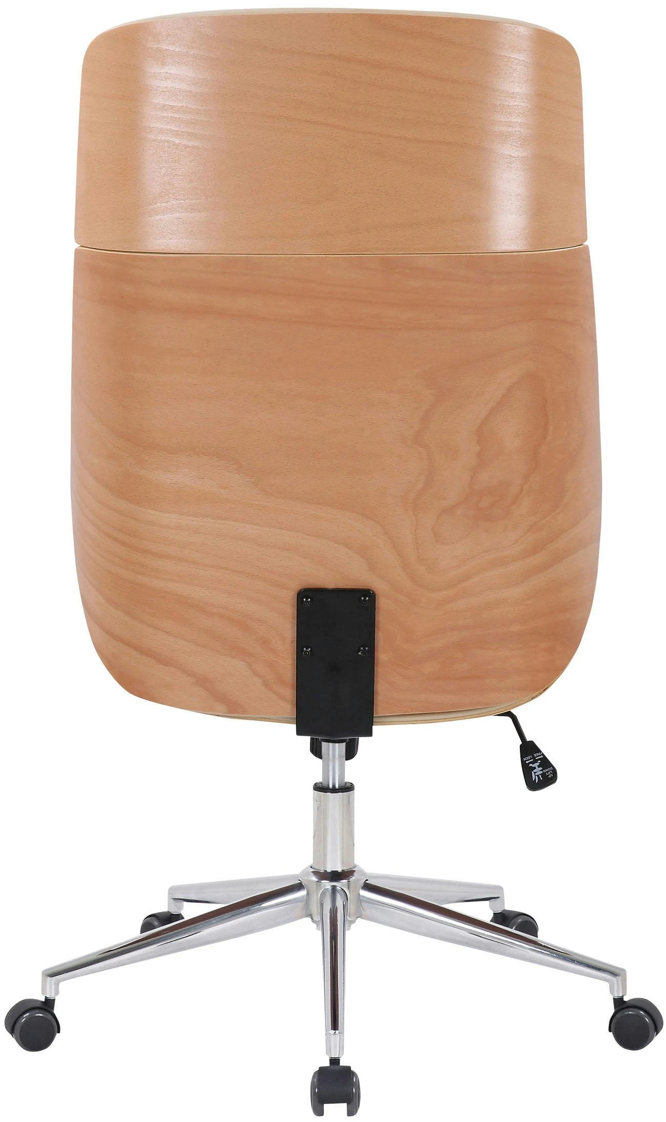 Dieser Bürostuhl Varel überzeugt nicht nur mit seinem modernen Look, auch in Sachen Komfort kann ihm keiner etwas vormachen. Der Drehstuhl ist angenehm gepolstert und mit einem Kunstlederbezug versehen wodurch er besonders pflegeleicht ist. Durch die stufenlose Höhenverstellbarkeit und den Wippmechanismus wird komfortables Sitzen auch über mehrere Stunden ermöglicht. Die Stabilität ist durch das Metallgestell in Chromoptik gewährleistet. Durch die fünf Leichtlaufrollen kann man leicht und locker über den Boden rollen – egal ob auf Hart- oder Teppichböden. Das elegante Chromgestell und der Mix aus Kunstleder und Holz geben dem Ganzen noch das gewisse Extra und runden das Design ab.
