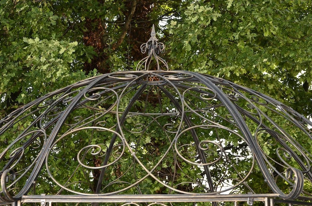 Sie suchen eine perfekte Rankhilfe für Ihre Pflanzen die auch noch schön anzusehen ist? Dann ist dieser Pavillon genau das Richtige! Sein schlichtes und stilvolles Design kombiniert mit vielen Rankmöglichkeiten garantiert Ihnen nicht nur die Blicke der Nachbarn. Der Artikel wurde aus Eisen handgefertigt und ist daher extrem stabil.
