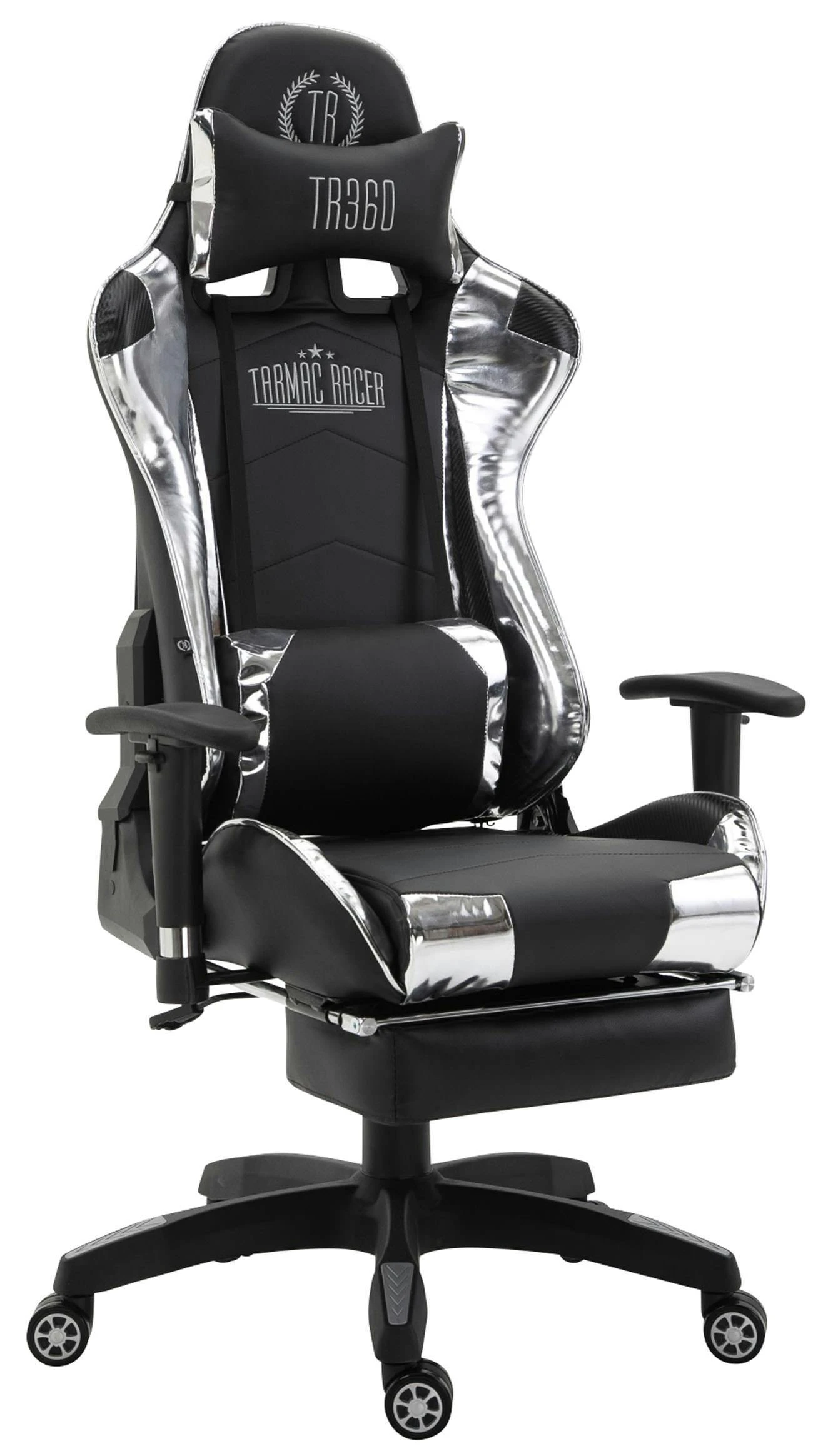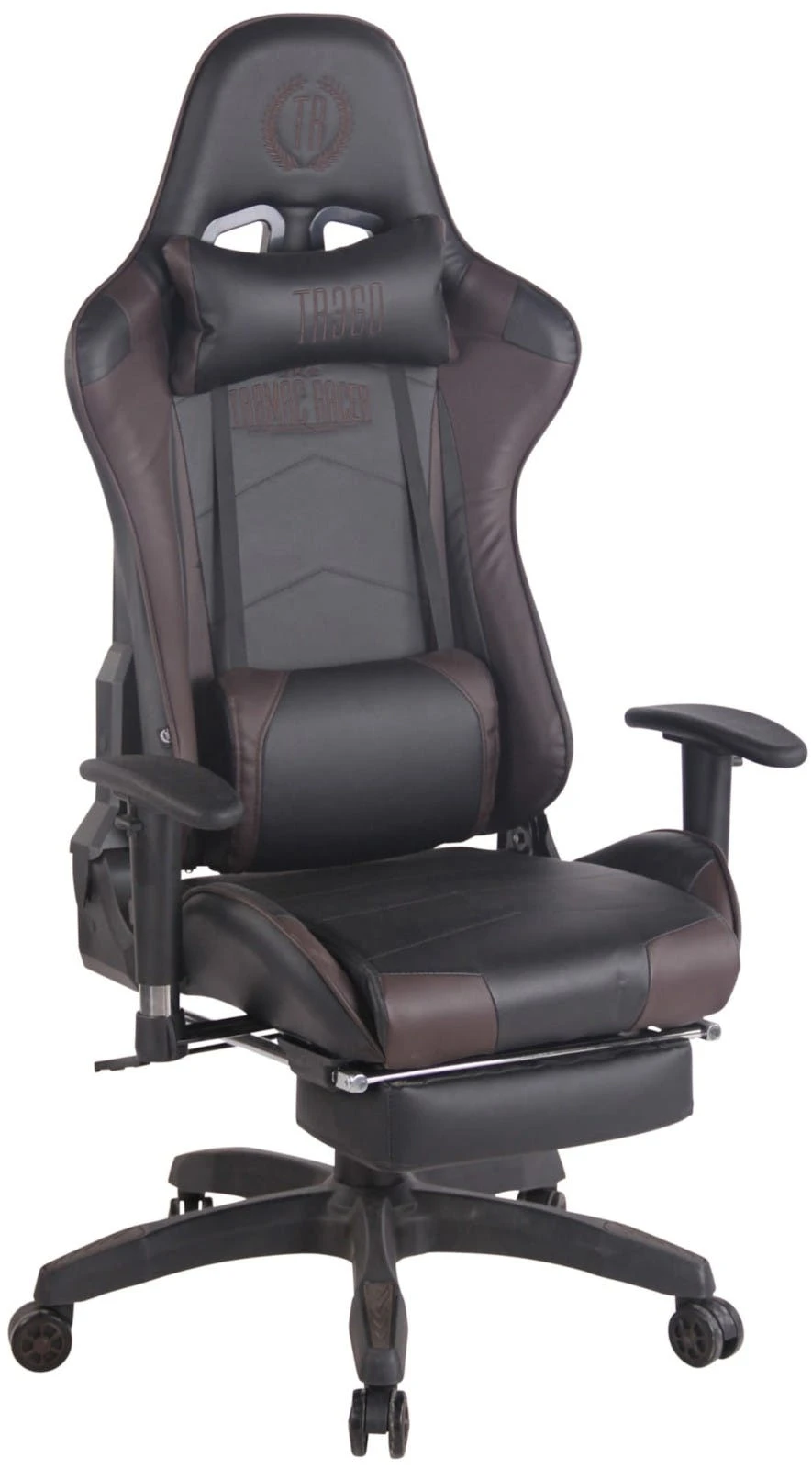 Der Bürostuhl Turbo XL überzeugt nicht nur mit seinem sportlichen Look, auch in Sachen Komfort und Belastbarkeit kann ihm keiner etwas vormachen. Die hochwertige Polsterung sorgt für ein komfortables Sitzgefühl, welches auch bei längerem Verweilen bestehen bleibt. Die leicht verstellbare Fußstütze und Rückenlehne sorgen zusätzlich für eine angenehme Pause zwischendurch, bei der sich entspannt zurückgelehnt werden darf und die Beine hochgelegt werden können. Dank der stufenlos verstellbaren Sitzhöhe und der abnehmbaren Nacken- und Rückenkissen garantiert der Schreibtischstuhl jederzeit ein ergonomisches Sitzen. Auch die Höhe der schwenkbaren Armlehnen ist regulierbar. Der Computerstuhl steht standsicher auf fünf Leichtlaufrollen und einem Gestell aus Kunststoff.