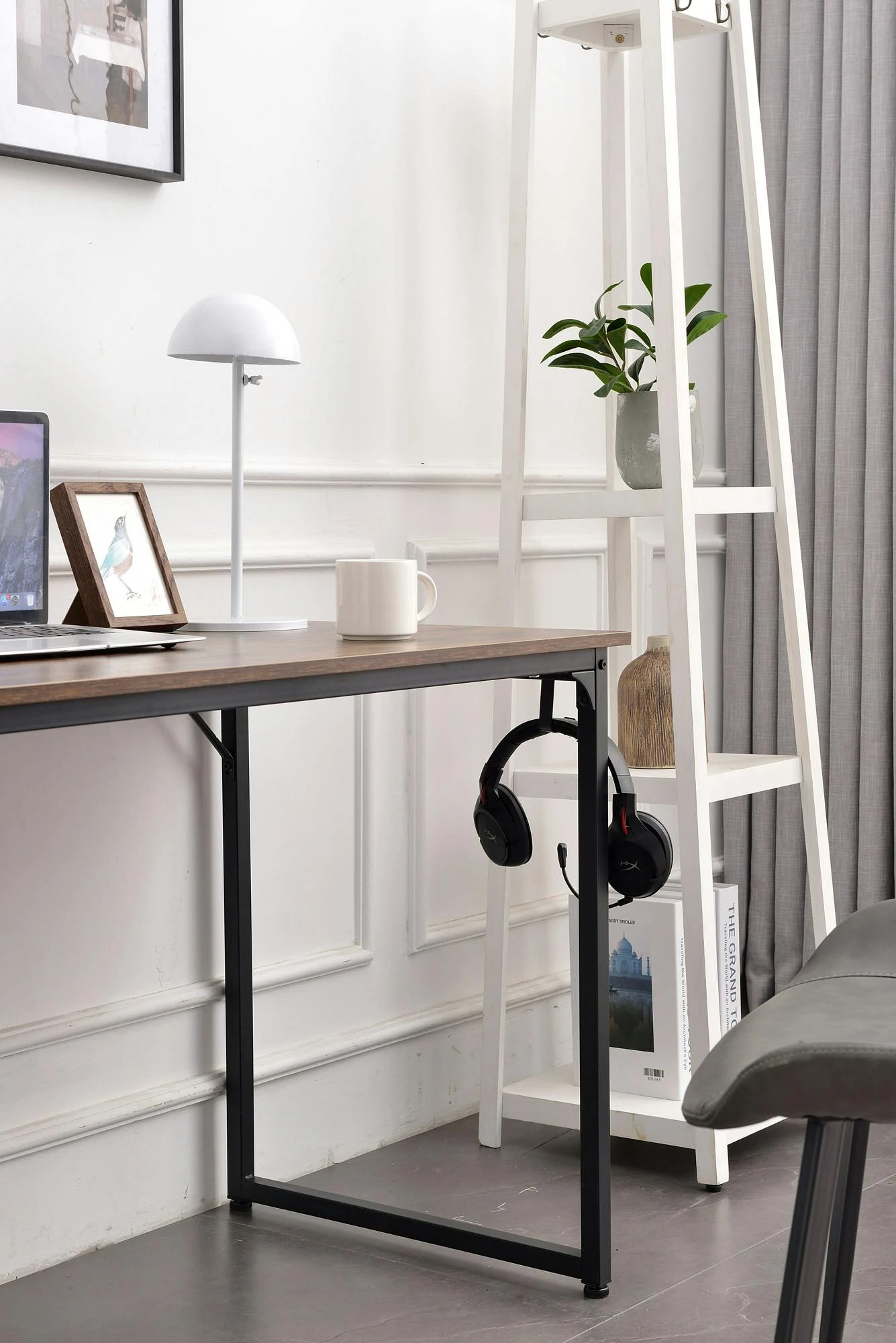 Hochwertige Materialien machen diesen Tisch, in Kombination mit seiner klaren Form, zu einem echten Hingucker. Der Schreibtisch Greeley zaubert mit seiner Reliefoberfläche ein wunderbares Ambiente in den Arbeitsbereich. Die 12 mm starke Tischplatte ist aus MDF gefertigt und liegt dabei stabil und standsicher auf einem Gestell aus lackiertem Stahlrohr. Die Füße sind mit verstellbaren Bodenschonern ausgestattet wodurch der Tisch auch auf leicht unebenen Böden sicher und stabil steht. Durch die verschiedenen Varianten lässt sich dieser Schreibtisch wunderbar in jedes Wohnambiente integrieren. Eine Dokumententasche und ein Kopfhörer-Haken gehören bei der Farbe dunkelbraun und natura noch zur Ausstattung.