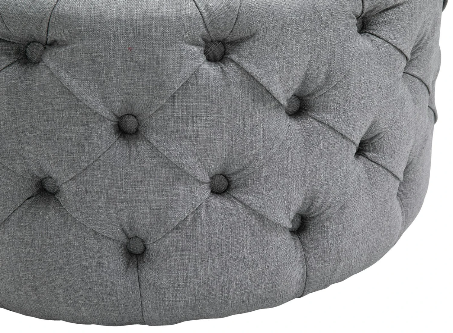 Holen Sie sich mit unserem vielseitig einsetzbaren Sitzhocker, aus hochwertigem Stoff, das elegante Chesterfield Design zu sich nach Hause. Die Oberfläche des Hockers wurde komplett mit auffälligen Zierknöpfen überzogen und passt hervorragend zum zeitlosen, englischen Chesterfield Stil. Als Sitzgelegenheit oder aber auch als Fußhocker oder Couch- und Nachttisch macht er eine hervorragende Figur und verleiht jedem Ambiente einen eleganten Charme. Unter dem Gestell befinden sich Bodenschoner, die ein Zerkratzen des Bodens verhindern und dank der verarbeiteten Materialien ist der Hocker besonders pflegeleicht.