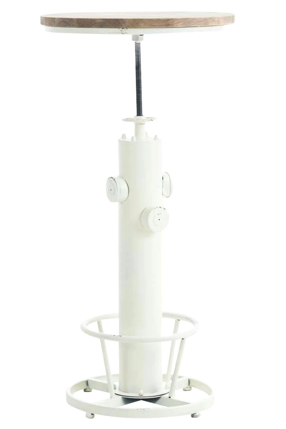 Dieser besonders schöne Stehtisch ist in der Form eines alten Hydranten gehalten. Das detailverliebte Exemplar ist aus Metall und einer Tischplatte aus Kiefernholz hergestellt. Die Tischplatte wird von einem sehr stabilen und in der Höhe verstellbarem Gestell getragen. So passt er sich jeder individuellen Größe an. Dieser exklusive Bartisch ist sowohl für den privaten Gebrauch als auch für die geschäftliche Nutzung bestens geeignet. Das kompakt verschweißte Untergestell bietet neben festem Stand eine praktische Fußstütze.