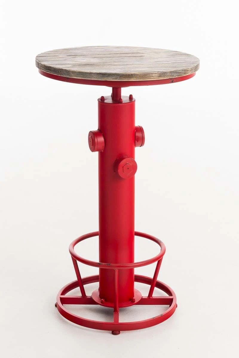 Dieser besonders schöne Stehtisch ist in der Form eines alten Hydranten gehalten. Das detailverliebte Exemplar ist aus Metall und einer Tischplatte aus Kiefernholz hergestellt. Die Tischplatte wird von einem sehr stabilen und in der Höhe verstellbarem Gestell getragen. So passt er sich jeder individuellen Größe an. Dieser exklusive Bartisch ist sowohl für den privaten Gebrauch als auch für die geschäftliche Nutzung bestens geeignet. Das kompakt verschweißte Untergestell bietet neben festem Stand eine praktische Fußstütze.