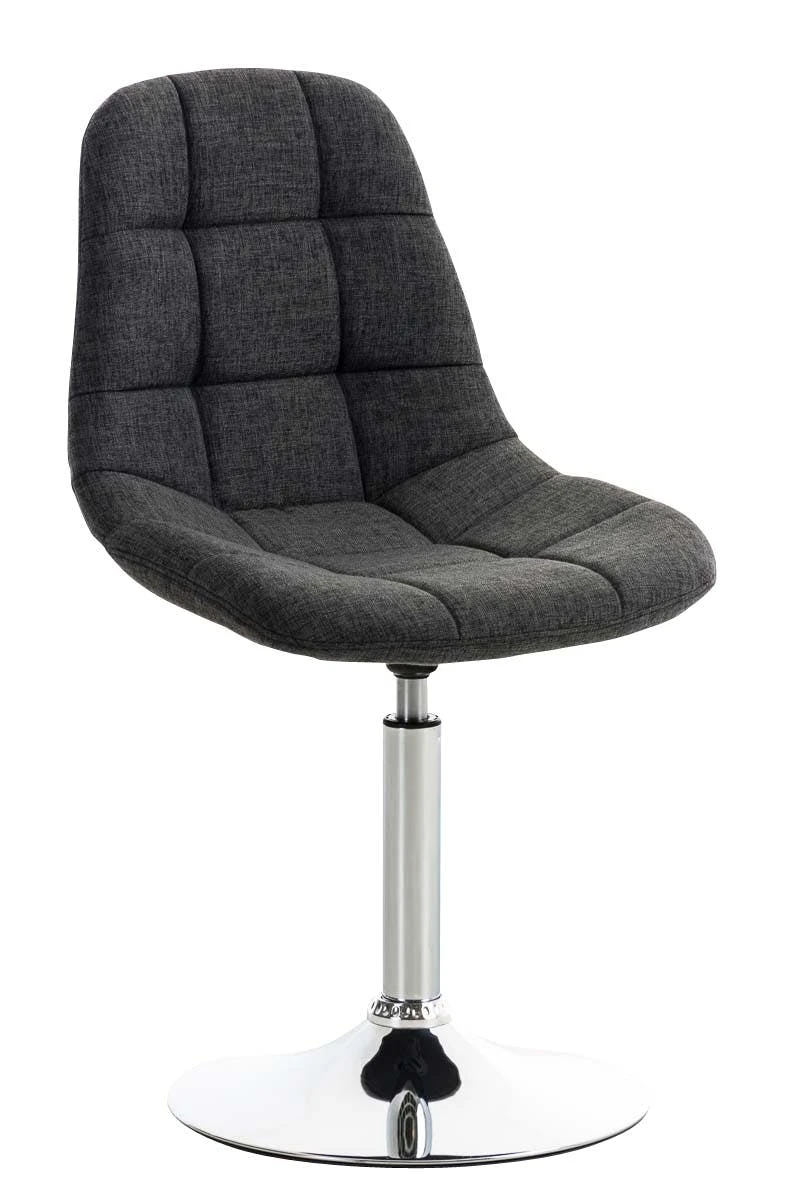 Der Drehstuhl Emil besticht durch seine komfortable Polsterung und einen schlanken, rundlichen Look. Rechteckige Ziernähte und klare Farbvarianten machen ihn zum optischen Highlight. Der filigrane Sitz ist mit einem Stoffbezug überzogen der auch ein ergonomisches Sitzen garantiert. Dabei steht er standsicher auf einem Trompetenfuß aus Metall in Chromoptik und ist um 360° drehbar. Materialzusammensetzung Sitzbezug: Stoff (100% Polyester)