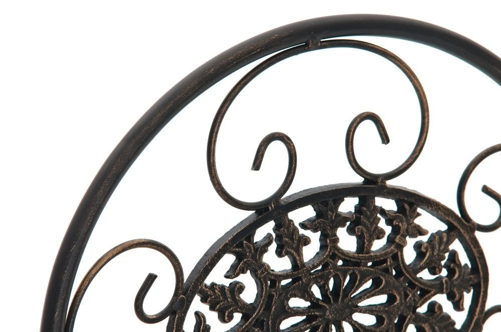 Das Produkt wurde aus Eisen handgefertigt und daher extrem stabil. Die Oberfläche ist mit in Handarbeit nachempfundener antiker Patina veredelt. Dieses edle Designstück ist absolut neu und ergänzt sich hervorragend mit allen Metalltischen in unserem Shop.